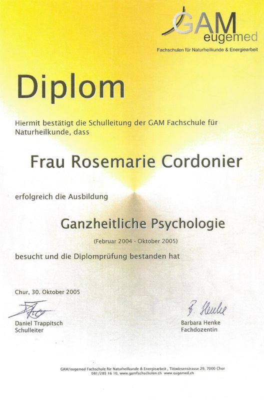 Fascinée par le monde du savoir et des livres et passionnée depuis longtemps de psychologie et de spiritualité, j’ai travaillé durant 25 ans comme bibliothécaire à Zurich, Genève et Sion. Un licenciement économique m’a permis de reconsidérer mes intérêts et m’a donné la possibilité de me former dans les domaines de psychologie, développement personnel et de la formation d’adultes. A partir de 2003, je travaille comme enseignante d’allemand pour adultes. Comme travail de diplôme pour l’obtention du brevet fédéral de formatrice d’adultes j’ai réalisé un de mes rêves et conçu et animé des ateliers de développement personnel.